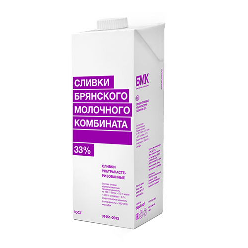 Сливки натуральные БМК 33% 1 л